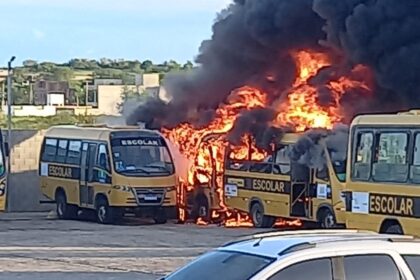Incêndio atinge ônibus escolares em Queimadas/PB