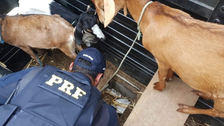 Durante fiscalização da PRF na BR 104, km 132, foi abordado uma caminhonete transportando cabras. O motorista, um homem de 33 anos, ficou muito nervoso durante a abordagem, o que chamou a atenção dos policiais. Durante a fiscalização minuciosa ao veículo, os policiais perceberam que haviam tábuas no fundo da carroceria do veículo. Ao levantar as tábuas foi localizado a quantia de 3,11 kg de cocaína escondidos.