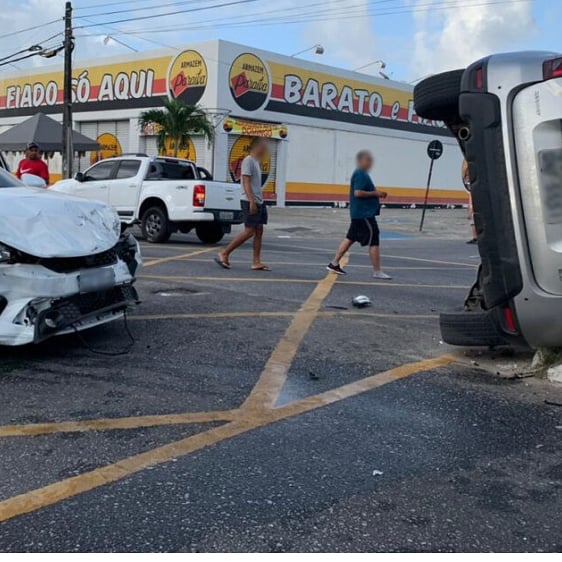 Um carro tombou, na manhã desta segunda-feira de carnaval (24), após ser atingido por um veículo, no bairro dos Bancários, Zona Sul de João Pessoa. O capotamento aconteceu no cruzamento da avenida Walfredo Macedo Brandão com a Rua Rejane Freire Correia.