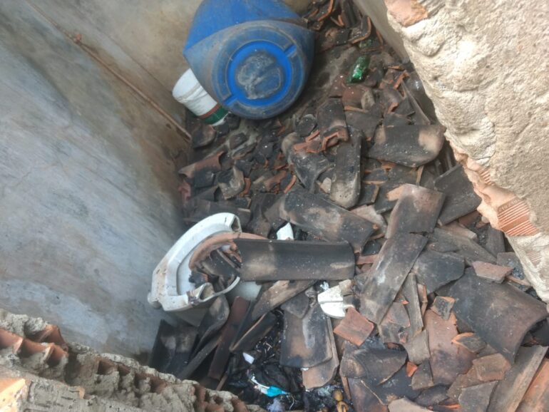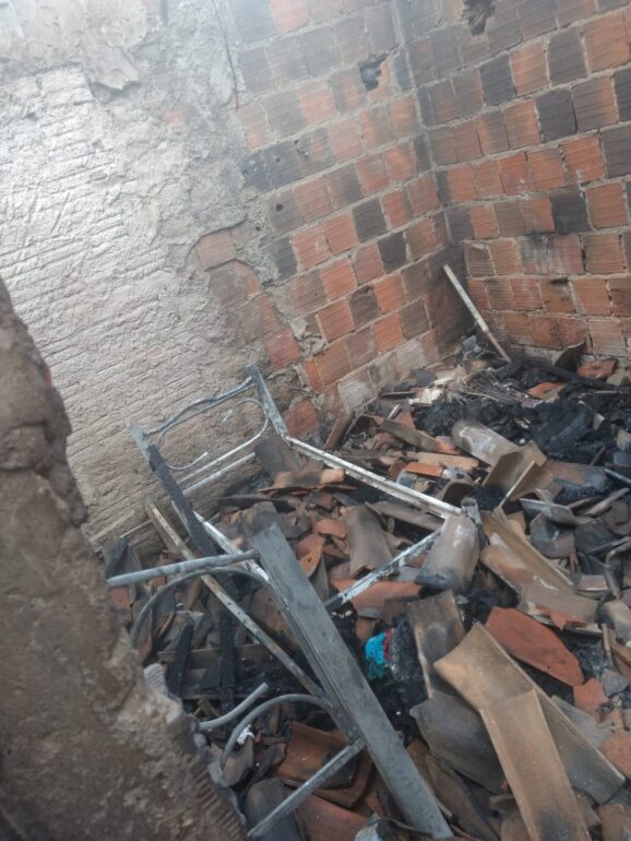Felizmente, no momento do incêndio, a mulher e seus filhos estavam na casa da mãe dela.