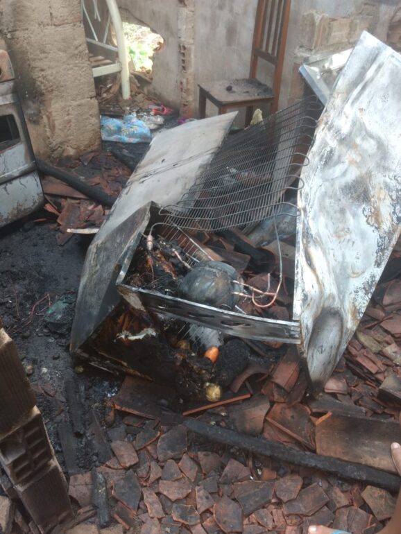 Uma casa na Avenida Ministro Alcides Carneiro, no bairro do Araxá, em Campina Grande, ficou totalmente destruída após um incêndio na madrugada deste domingo (15).
