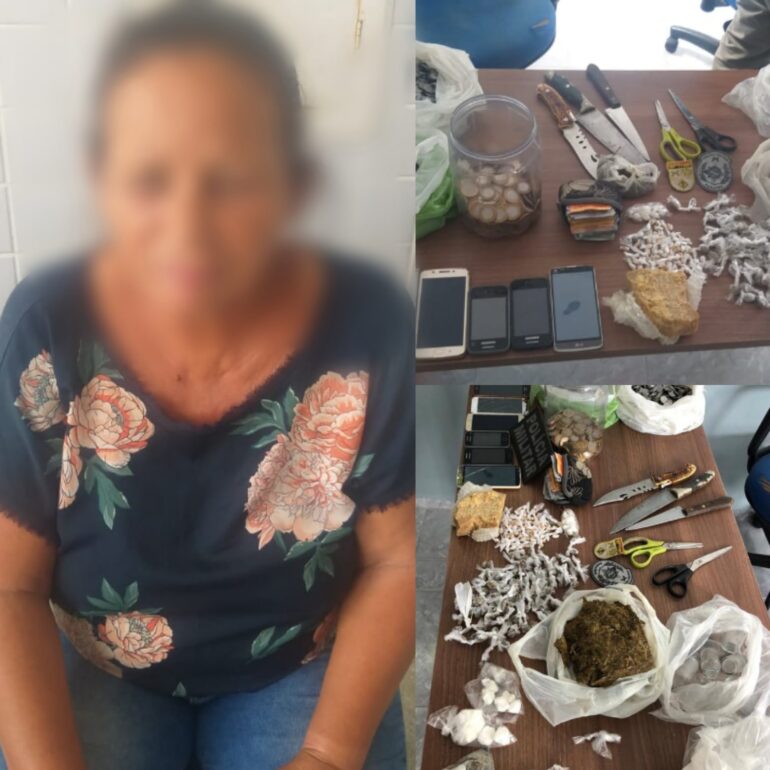 Uma mulher de 58 anos foi presa acusada de tráfico de drogas nesta quinta-feira (16), no bairro do Monte Castelo, em Campina Grande. Entre os objetos que foram apreendidos, 07 celulares sem notas fiscais, 296 gramas de crack, maconha e R$ 2.665,50.