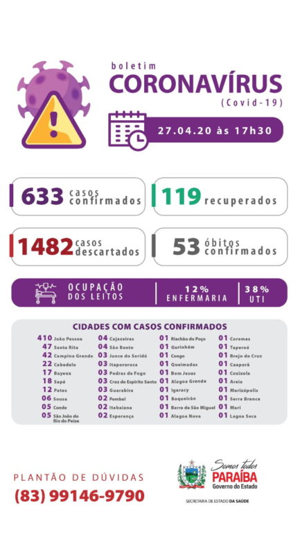 Estes e outros dados você pode conferir em www.paraiba.pb.gov.br/coronavirus