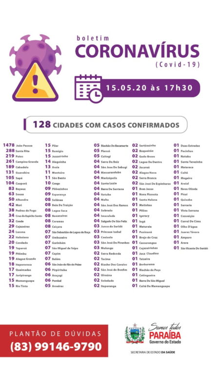 Nesta Sexta, 15 de maio, a Paraíba registra mais uma vez, o maior número de casos e em um único dia, são 378 novos casos de Covid-19 e 10 óbitos confirmados causados pela doença. Assim, a Paraíba atinge 3.739 casos de Covid -19.