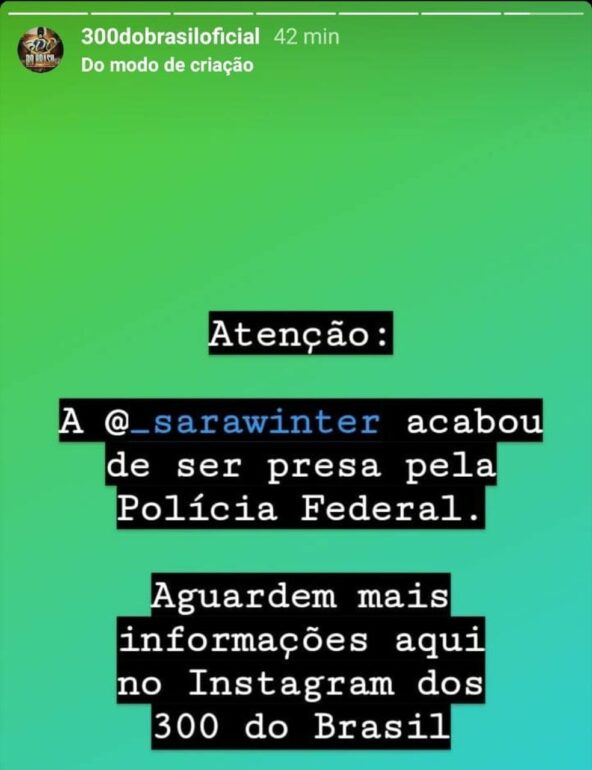 A prisão ocorre dentro do inquérito que investiga o financiamento de protestos antidemocráticos e não tem relação com a investigação sobre a produção fake news. Ao G1, a defesa de Sara Winter disse “ainda não ter conhecimento sobre o motivo da prisão”.