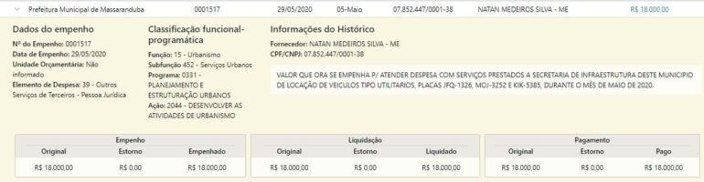 O Blog do Márcio Rangel obteve acesso aos empenhos a partir de dados do Tribunal de Contas do Estado da Paraíba (TCE-PB) que mostram o valor pago pelo aluguel de três veículos, que deveriam ficar a serviços da Secretaria de Infraestrutura. O último empenho pago, no valor de R$ 18 mil, foi informado no mês de maio. Em meses anteriores, chegou a ser pago R$ 24 mil por mês, a mesma empresa.