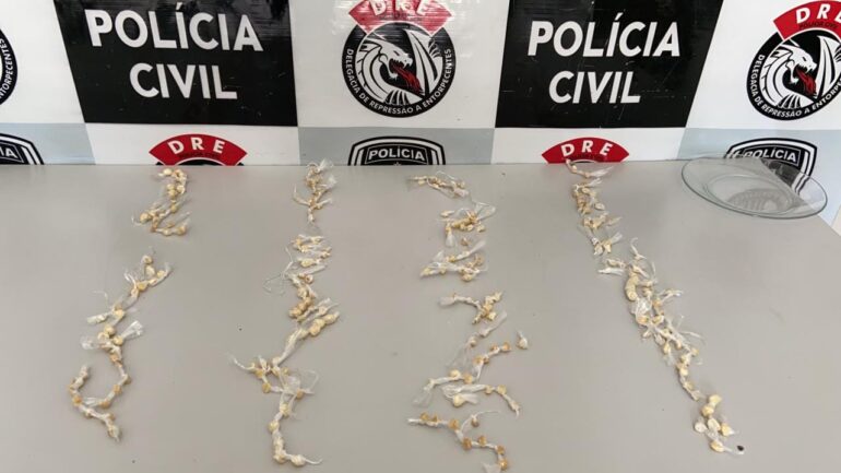 No local foi encontrado 235 pedras de crack, que já estavam embaladas para a comercialização, toda essa droga estava de posse de um jovem de 20 anos, que foi pego em flagrante e autuado por tráfico de drogas.
