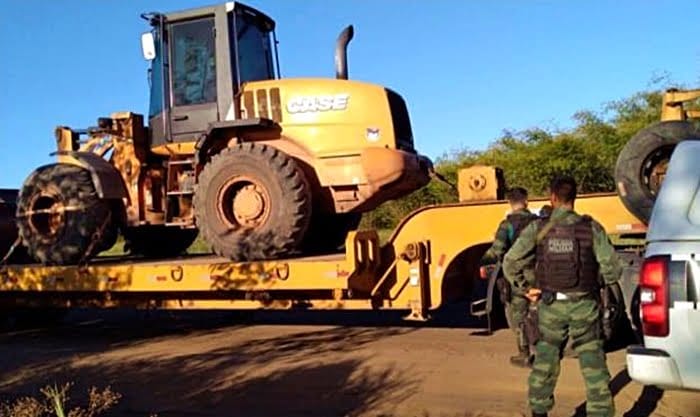 As duas máquinas e caçamba utilizadas na extração ilegal foram apreendidas e o infrator responsável pela prática criminosa foi preso em flagrante e apresentado na delegacia da Polícia Federal.