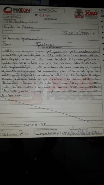 O Paraíba de Prêmios deve prestar esclarecimentos e suspender desde já todos os sorteios, lembrando que o não cumprimento desta notificação implica em sanções cabíveis na lei.