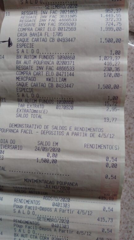 O crime só foi percebido pela família praticamente uma semana depois, quando, na tarde desta quinta, Ana Maria foi até a agência realizar um saque e bloqueou o cartão que estava de posse após inserir a senha errada repetidas vezes. O motivo do qual a senha apresentava-se como incorreta era evidente: o cartão não era dela.