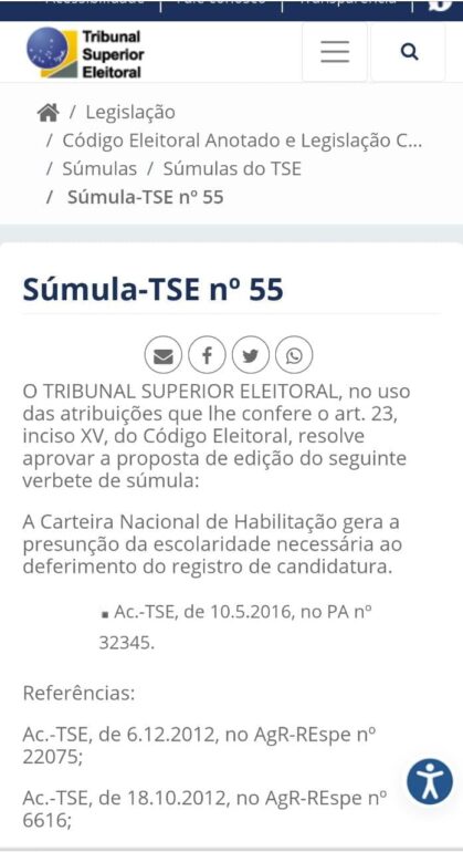 A coligação de Benedito Braz da Silva apresentou as xerox autenticadas da sua carteira de habilitação e o histórico escolar do candidato, o que comprova a sua alfabetização e também a sua aptidão para concorrer a corrida eleitoral.