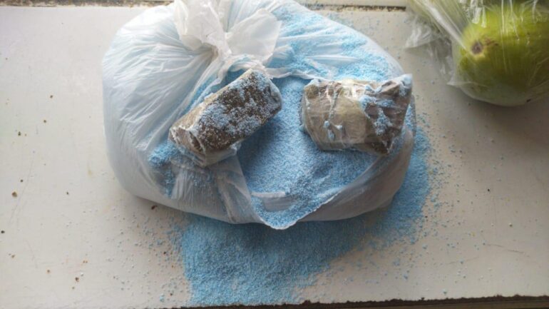 Parte do material estava escondido nos pacotes de arroz, sorda e doce. Já a outra parte foi encontrada em uma sacola de sabão em pó e até no interior de uma goiaba. Um celular também foi apreendido durante a revista.
