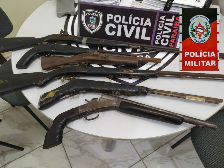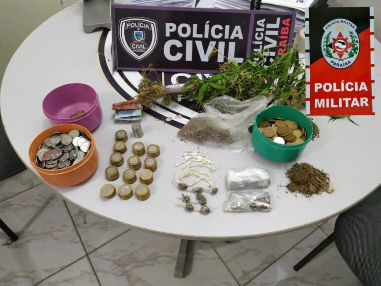 Durante as buscas dentro do imóvel, foram encontradas espingardas e drogas: pés de maconha, maconha prensada, sementes de maconha, crack e cocaína, e dinheiro da comercialização da droga.