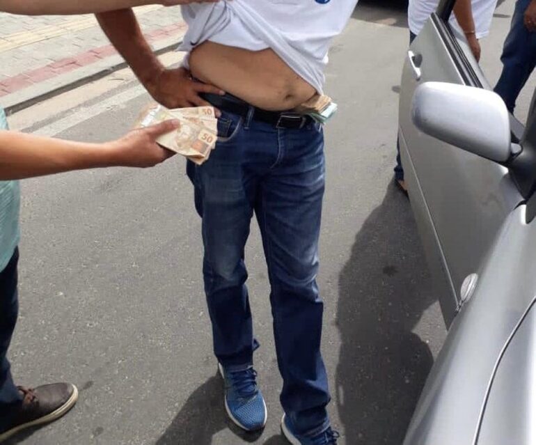 Neste sábado, a Polícia Civil interceptou um veículo no bairro Parque Potira. Segundo Alexandrino, no carro estavam três pessoas com uma quantia em dinheiro oculto dentro das vestes. Além disso, também foram apreendidos celulares, cadernos com listas de nomes e material de campanha. Logo após, houve uma diligência até um apartamento localizado no mesmo bairro, onde foram detidas mais duas pessoas.