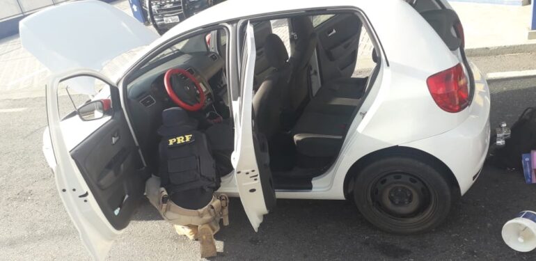Conforme a PRF, os passageiros, um homem e uma adolescente, desceram do veículo bastante assustados. Diante do nervosismo apresentado pelo casal, a equipe realizou buscas no interior do veículo. Os policiais encontraram um revólver calibre 308 da marca Taurus com seis munições intactas, prontas para uso, na bolsa da adolescente que estava dentro do veículo.