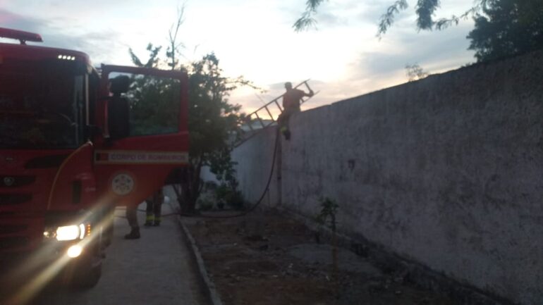 Uma equipe do Corpo de Bombeiros foi acionada para atender uma ocorrência de fogo em vegetação no terreno da Escola Estadual Senador Argemiro de Figueiredo, no bairro do Catolé, em Campina Grande, na tarde desta sexta-feira (22).