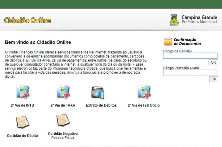 Os boletos para o pagamento em cota única, como também os utilizados para o pagamento parcelado, podem ser impressos de forma online no site da prefeitura.