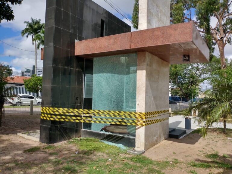 Outras imagens repassadas para nossa equipe, mostram como ficou o local na manhã do domingo, com estilhaços espalhados por toda praça e o sentimento de revolta com tamanha covardia ao patrimônio da cidade.
