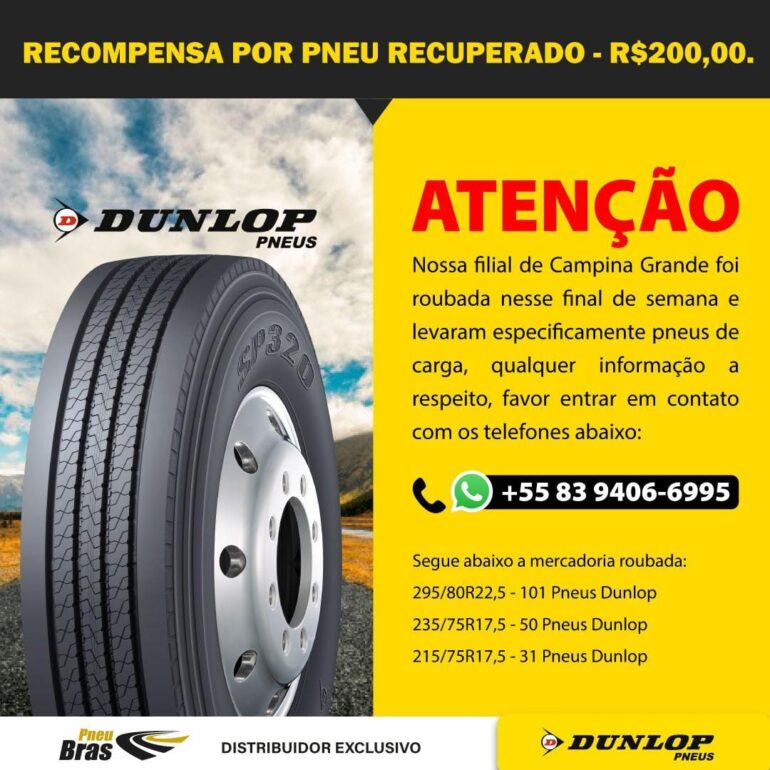 Através de suas redes sociais, a Dunlop pneus ofereceu uma recompensa de R$200 para cada pneu recuperado pela população. A postagem ainda informa que de posse de qualquer informação, a comunidade pode entrar em contato através do número (83) 99406-6995.