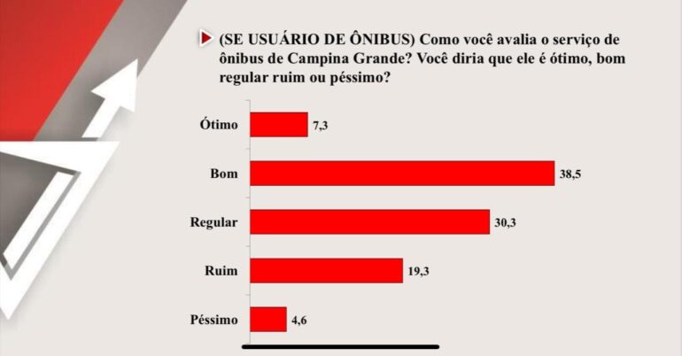 O mesmo levantamento avaliou a qualidade do serviço de ônibus na cidade Rainha da Borborema.