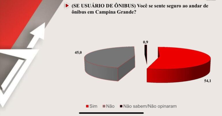 A maioria dos campinenses afirmou também que se sente seguro ao circular nos ônibus de Campina Grande. Esta foi a opinião de 54,1% dos entrevistados. 45,0% disseram que não se sentiam seguros e 0,9% não opinaram.