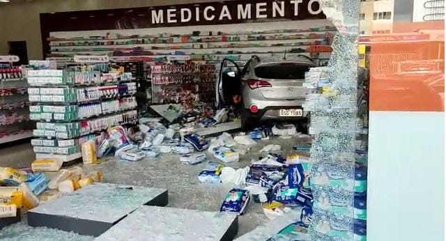 Um acidente de trânsito foi registrado na manhã desta segunda-feira (4) no bairro do Geisel, em João Pessoa. Uma mulher que dirigia um carro perdeu o controle do veículo, colidiu com outro carro e atropelou um motociclista. Logo após a batida, o carro invadiu uma farmácia.