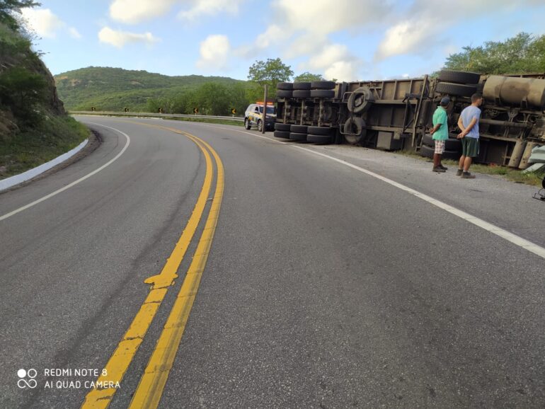 Na manhã desta sexta-feira (25), uma carreta tombou no KM 280, em Santa Luzia, no Sertão do estado.