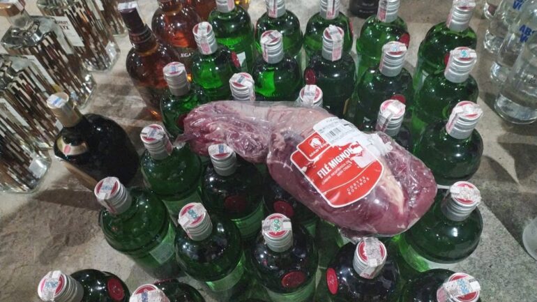 Três homens foram presos na noite desta quinta-feira (3), em Alhandra, na Paraíba, acusados de roubar 56 garrafas de bebidas alcoólicas, como gin, vodka e uísque, além de uma peça de filé mignon. A prisão foi realizada pela Polícia Rodoviária Federal após uma denúncia.