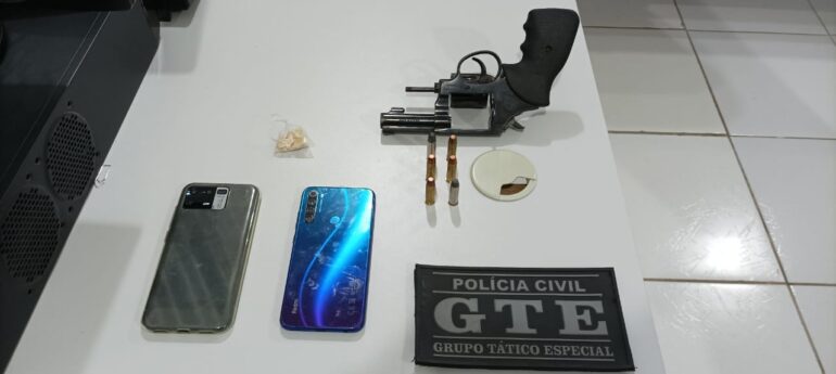 Uma ação conjunta das polícias Civil e Militar no município de Patos prendeu dois homens em flagrante, na manhã desta sexta-feira (1). Com eles, os policiais apreenderam um revólver calibre 38, munições e diversos elementos que evidenciam a prática de tráfico de drogas.