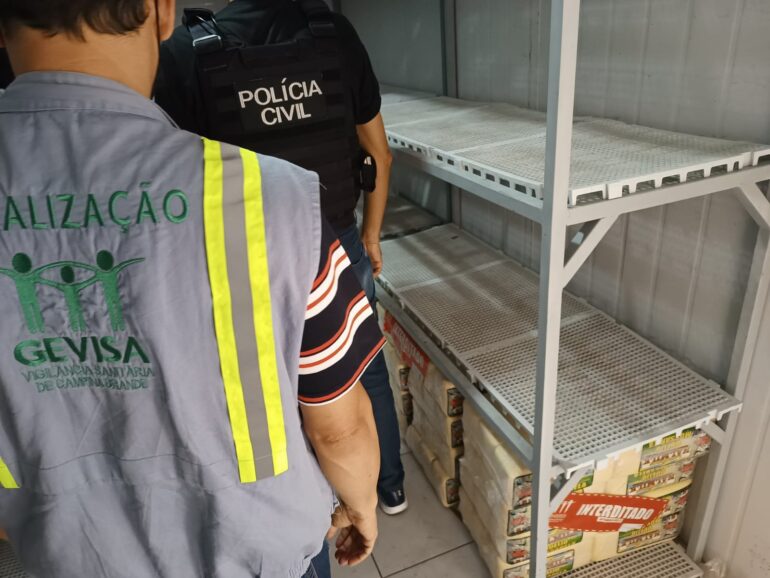A Polícia Civil da Paraíba, por meio da Delegacia de Defraudações de Campina Grande e com o apoio da Gevisa, apreendeu na terça-feira (5), mais de 480 quilos de queijo muçarela que estavam sendo comercializados de forma clandestina. A apreensão aconteceu no bairro das Malvinas, em Campina Grande.