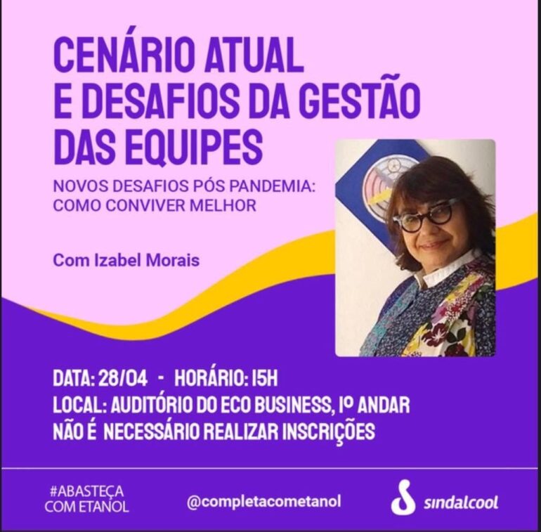 Para debater sobre esse assunto, nesta quinta-feira, 28, o Sindicato da Indústria de Fabricação do Álcool no Estado da Paraíba – Sindalcool promoverá um evento com a participação da psicóloga, Izabel Morais. Ela irá proferir a palestra sobre o “Cenário Atual e Desafios da Gestão das Equipes” que abordará o cenário pós-pandemia. O evento acontecerá no auditório do Eco Business, no Miramar, em João Pessoa, a partir das 15h. Não é necessário fazer inscrição.