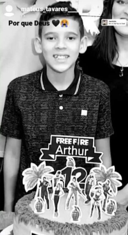 Arthur Barbosa de Lima, de 13 anos, andava de bicicleta na Rua São Pedro quando bateu com a bicicleta na roda traseira de um ônibus coletivo.