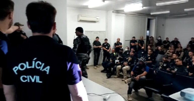 A equipe que mobiliza cerca de 100 homens, além de 20 viaturas segue no local para dar cumprimento ao último mandado de prisão e outros oito de busca e apreensão.