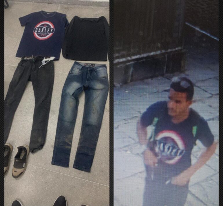 Com ajuda da população através do Disque Denúncia, os policiais identificaram o suspeito e foram até a residência do mesmo, onde encontraram as roupas que foram utilizadas por ele na prática do crime.