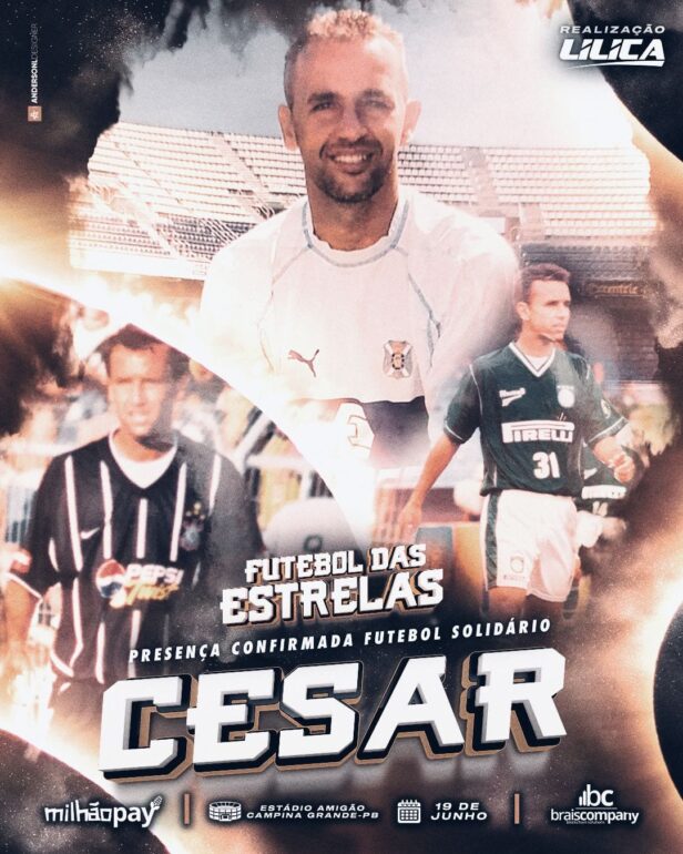 Diversas personalidades famosas do esporte estarão reunidas em um jogo solidário promovido pela Braiscompany no próximo domingo (19), no estádio O Amigão, em Campina Grande.