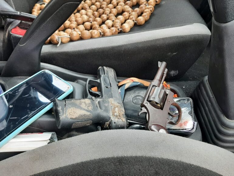 Segundo informações da Polícia Militar, houve troca de tiros com os suspeitos e um dos acusados foi baleado.