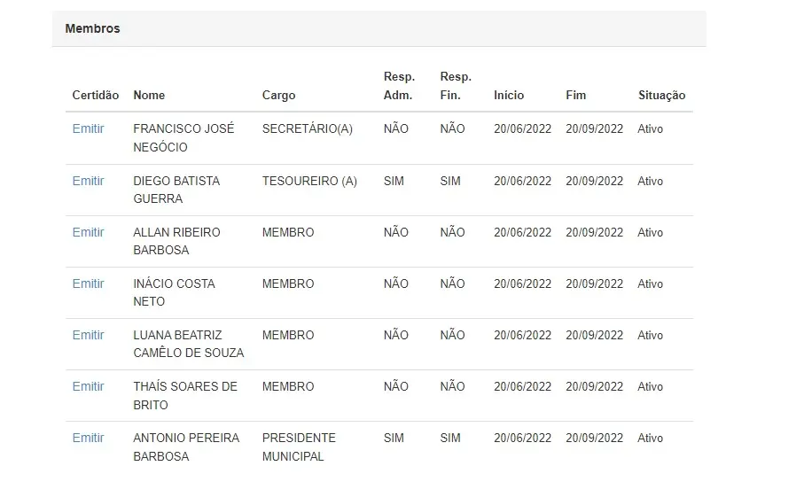 Também foram nomeados: Francisco José Negócio (Secretário), Diego Batista Guerra (Tesoureiro), Thaís Soares de Brito (Membro), Luana Souza (Membro), Inácio Costa Neto (Membro) e Allan Ribeiro (Membro).