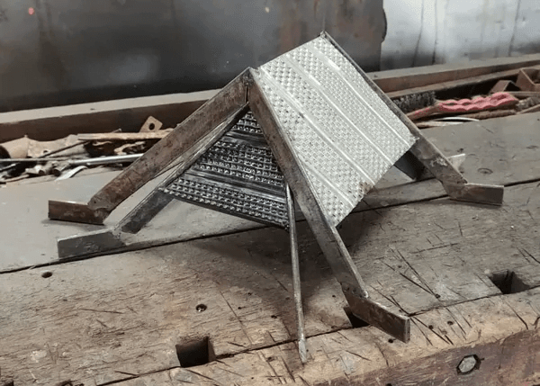 O trabalho teve como resultado uma escultura que mede 16cm x 31cm x 31cm, feita de metal de sucata. O telhado da arte foi feito de filtro de óleo de caminhão.