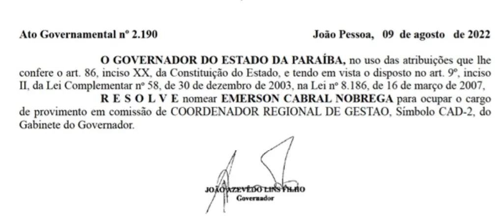 O empresário Emerson Cabral foi nomeado pelo governador João Azevêdo, como coordenador regional de gestão no Governo da Paraíba.
