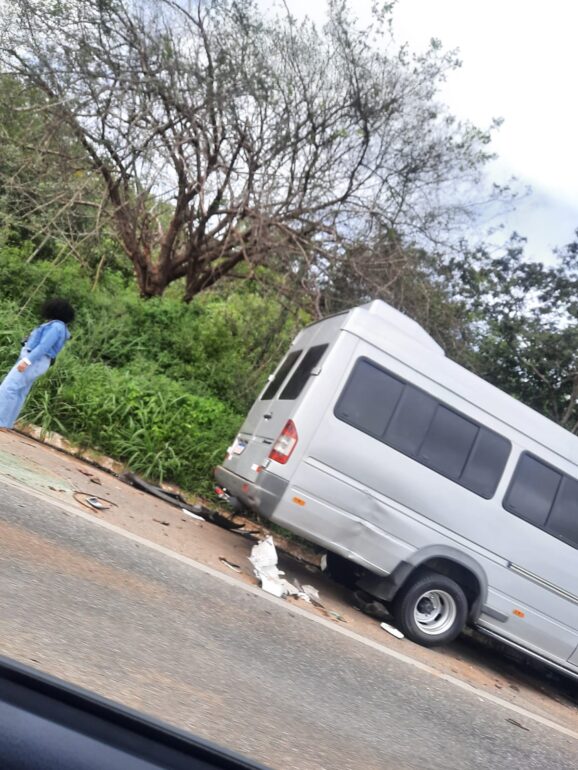 A van transportava alguns passageiros, que sofreram apenas ferimentos leves e foram atendidos pelo Samu.