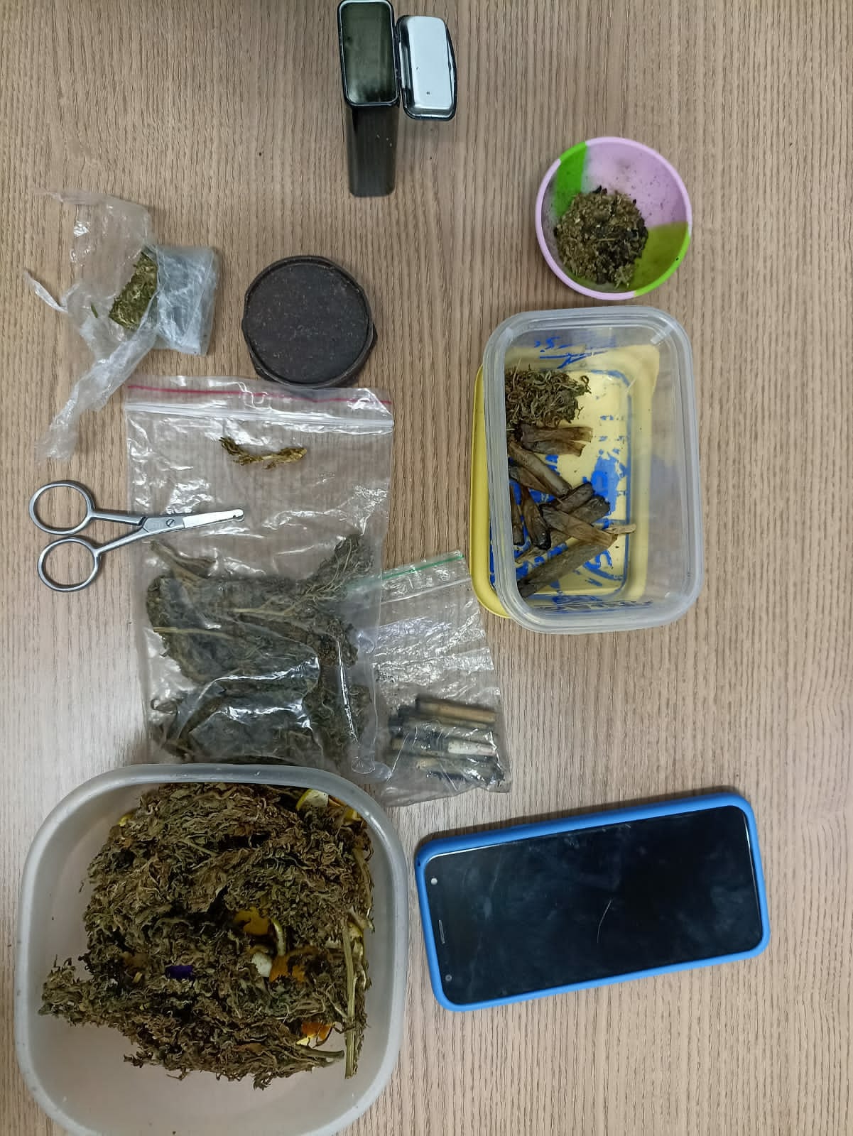 A mulher identificada apenas como Maria Eduarda foi revistada e junto à acusada, foi encontrado o entorpecente e uma tesoura.