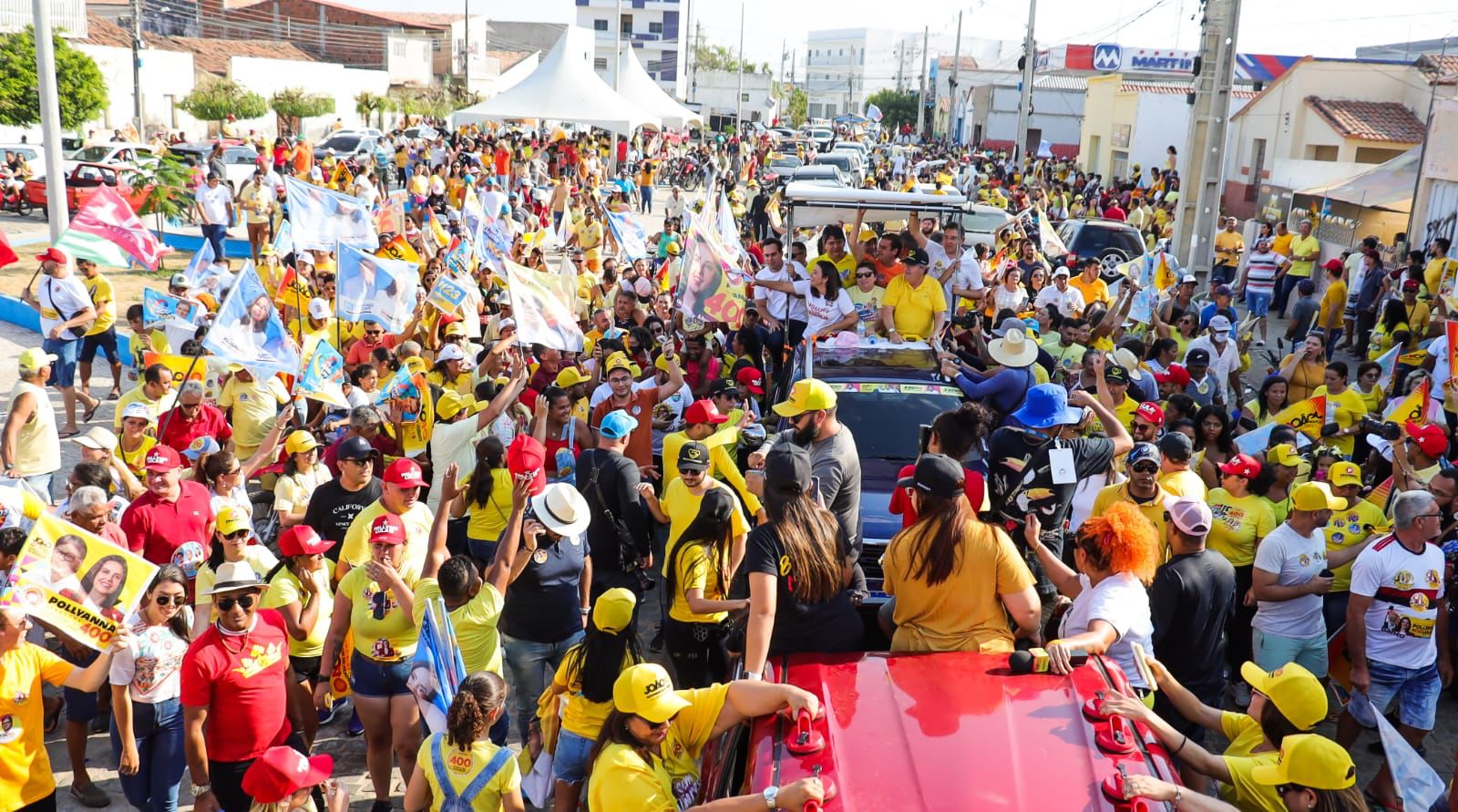 “O discurso aqui é de amor, não tem outra. Podem até matar uma ou duas flores, mas jamais vão deter a chegada da primavera. Aqui em Pombal é diferente, por isso estou lutando, gastando até a última gota de suor pra fazer Pombal chegar ao Senado. Não estou aqui neste palanque por acaso. Nosso governador faz um ótimo trabalho e vai continuar. E ele precisava de uma sertaneja, uma mulher guerreira nesse projeto, por isso estou aqui. Chorei, sorri, lutei e trabalhei, e tudo começou aqui na minha terra. Se como prefeita já fiz aquilo tudo, imagine sendo senadora. Vai ser uma revolução. Pombal me deixou preparada para andar essa Paraíba, junto do melhor time. A missão para a sertaneja está pronta, para dizer a Lula que ela terá uma senadora arretada ao lado dele. Que quer devolver felicidade, esperança e trabalho ao povo. Por isso a minha terra amada, cuidem de mim, para eu poder cuidar de vocês e de toda Paraíba amanhã. Levantem e vamos guerrear, meu povo está acostumado a batalha do bem, vamos nessa. No próximo domingo é 400, e 40 de João”, afirmou Pollyanna.