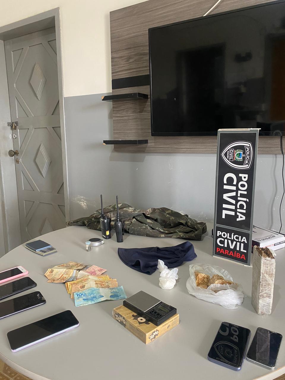 Durante as diligências, foram apreendidos uma quantidade significativa de crack, um tablete de maconha, balanças de precisão, rádio HT e uma máscara ninja.