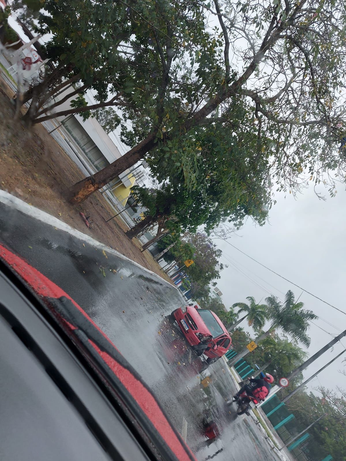 O automóvel, de cor vermelha, foi encontrado nas proximidades do Parque da Criança. Ainda não há informações sobre o estado clínico do condutor e nem sobre a sua identidade.
