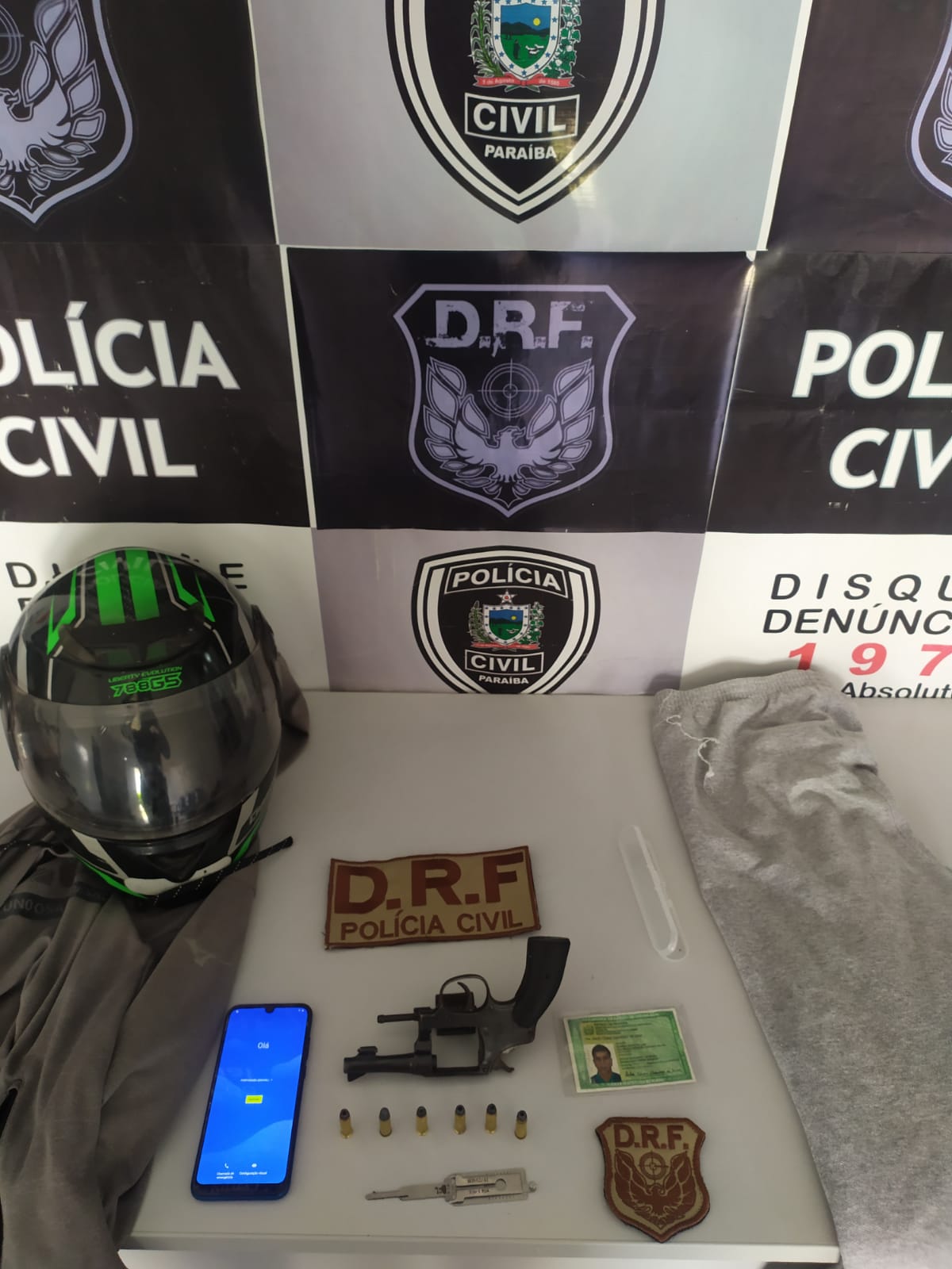 No imóvel, a polícia apreendeu a moto da vítima, uma Honda CG160, um aparelho celular, capacetes e um revólver calibre 32.