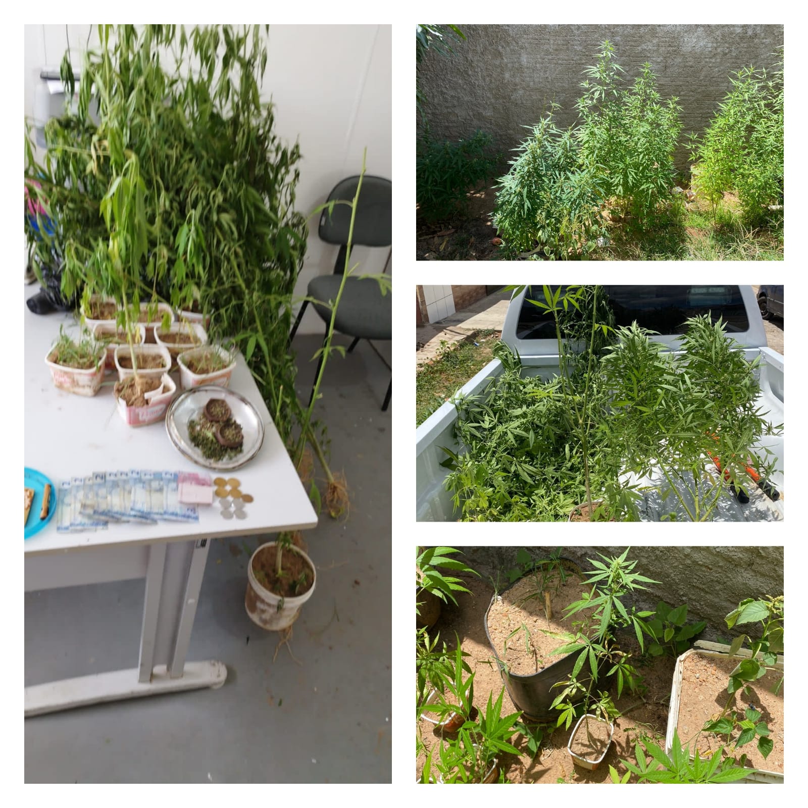 O detalhe é que tudo ocorria na sua casa, tanto a colheita da droga, como a venda do produto, foram localizados no interior da casa um certa quantidade de folhas, já desidratas, como também sementes para o replantio da planta, além de dinheiro trocado, triturador de fumo, papéis utilizados para embalagem da droga.