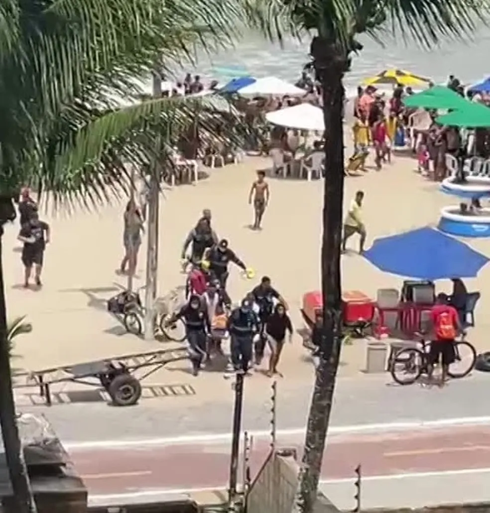 “Era uma mulher. Quando eu vi, já estava coberta por um pano e sendo levada [pelos socorristas]”, disse. Andréa conta que, mesmo depois do ataque, alguns banhistas continuaram na água. “Eles [os guarda-vidas] estão tirando as pessoas a pulso”, diz.