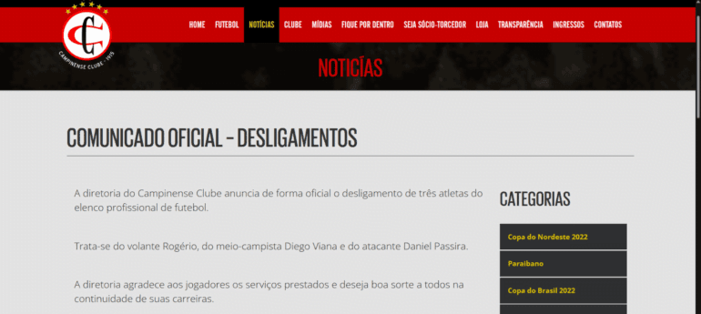 A diretoria do Campinense Clube anunciou o desligamento de três atletas do elenco profissional de futebol, nesta terça-feira (7). A informação foi publicada no site oficial da equipe.