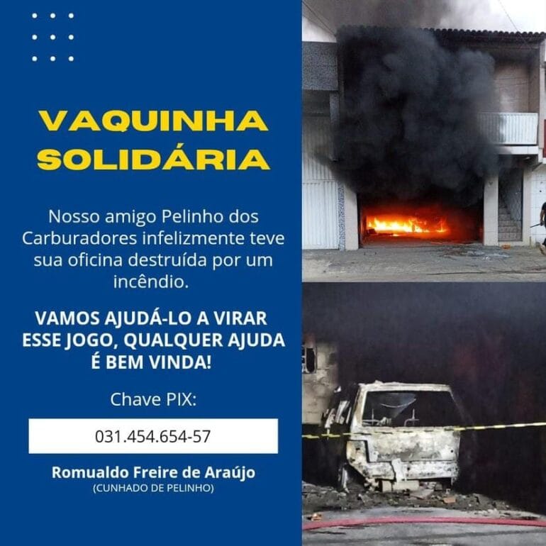O mecânico “Pelinho dos Carburadores” está pedindo ajuda em suas redes sociais, para conseguir refazer seu comércio, após o local ter sido destruído pelas chamas, na tarde da última sexta-feira.