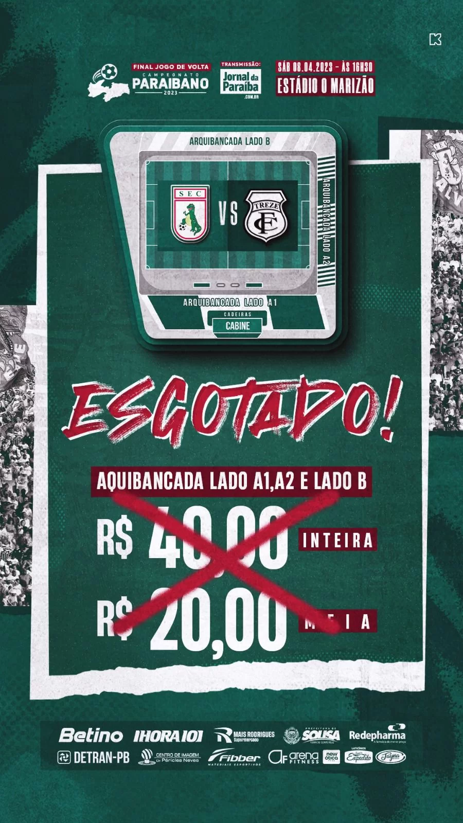 Quem comprou, comprou. Quem não comprou vai ter que dar um jeito ou assistir pela TV em casa ou por um restaurante. Os ingressos para o jogo decisivo do Campeonato Paraibano, entre Sousa e Treze, estão esgotados.